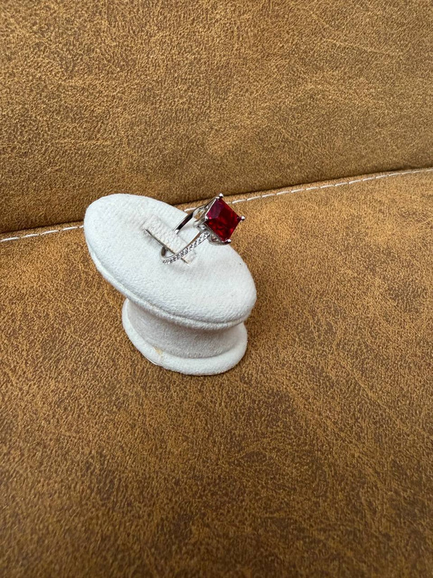 انگشتر نقره زنانه مدل جواهری با نگین قرمز قابل تنظیم سایز